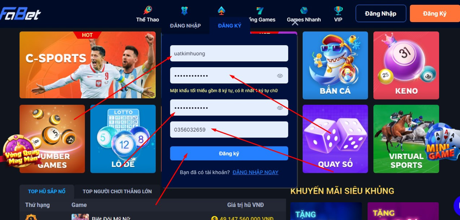 Cuối cùng tôi click ô đăng ký là đã tạo xong tại khoản tại FaBet. Cảm giác lúc đó thật sự rất phấn khích, như thể tôi đã chính thức bước chân vào một thế giới mới.