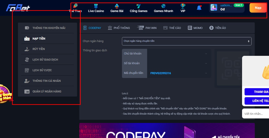 Và rồi, trang cá nhân sẽ hiện ra, đầy đủ các tính năng và thông tin mà anh em có thể tìm hiểu, khám phá như thông tin khuyến mãi, thực hiện nạp tiền,…