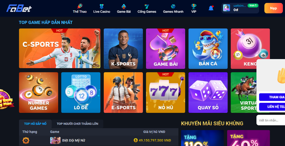 Giao diện Fabet bắt mắt, dễ sử dụng kể cả anh em tân thủ